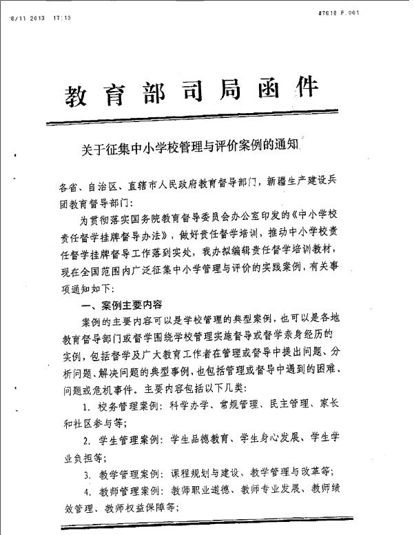 教育部《关于征集中小学校管理与评价案例的通知》